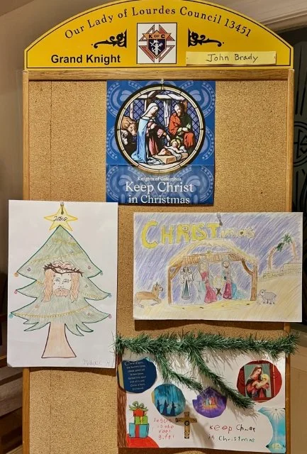 The CCD students of Our Lady of Lourdes participated in the Knights Christmas poster contest. The 1st placee posters were displayed in the narthex of the church throughout the Christmas season. All posters are displayed in the old social hall.